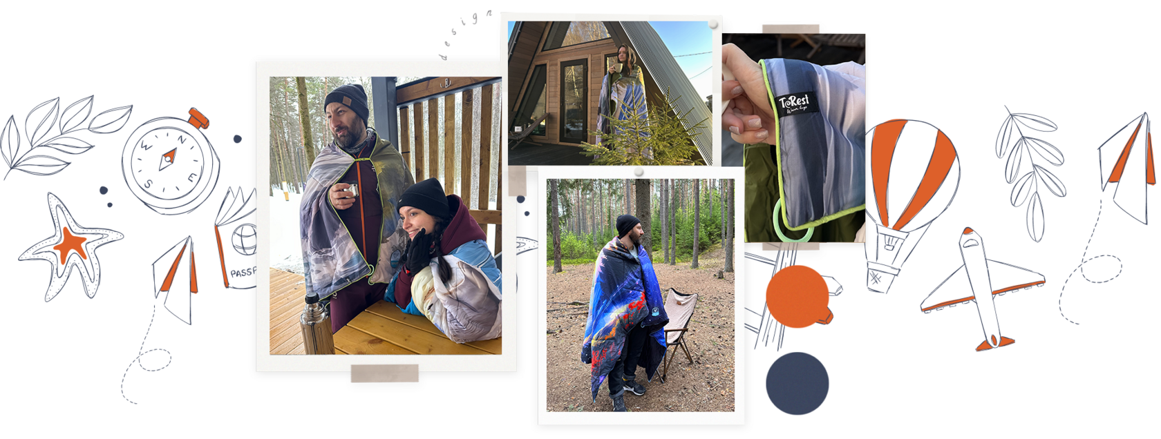 Однажды, во время очередной стоянки на природе во время холодной погоды, мы заметили, что было бы здорово не одевать на себя кучу слоёв одежды и отдыхать как «капуста», а накинуть на себя легкое и теплое одеяло. После этих мыслей мы решили разработать уникальные продукты, которые бы сочетали в себе комфорт, качество и яркий дизайн. Так появился бренд туристических одеял и подушек ToRest. Мы начали с разработки уникальных дизайнов, которые бы отражали дух путешествий и приключений.